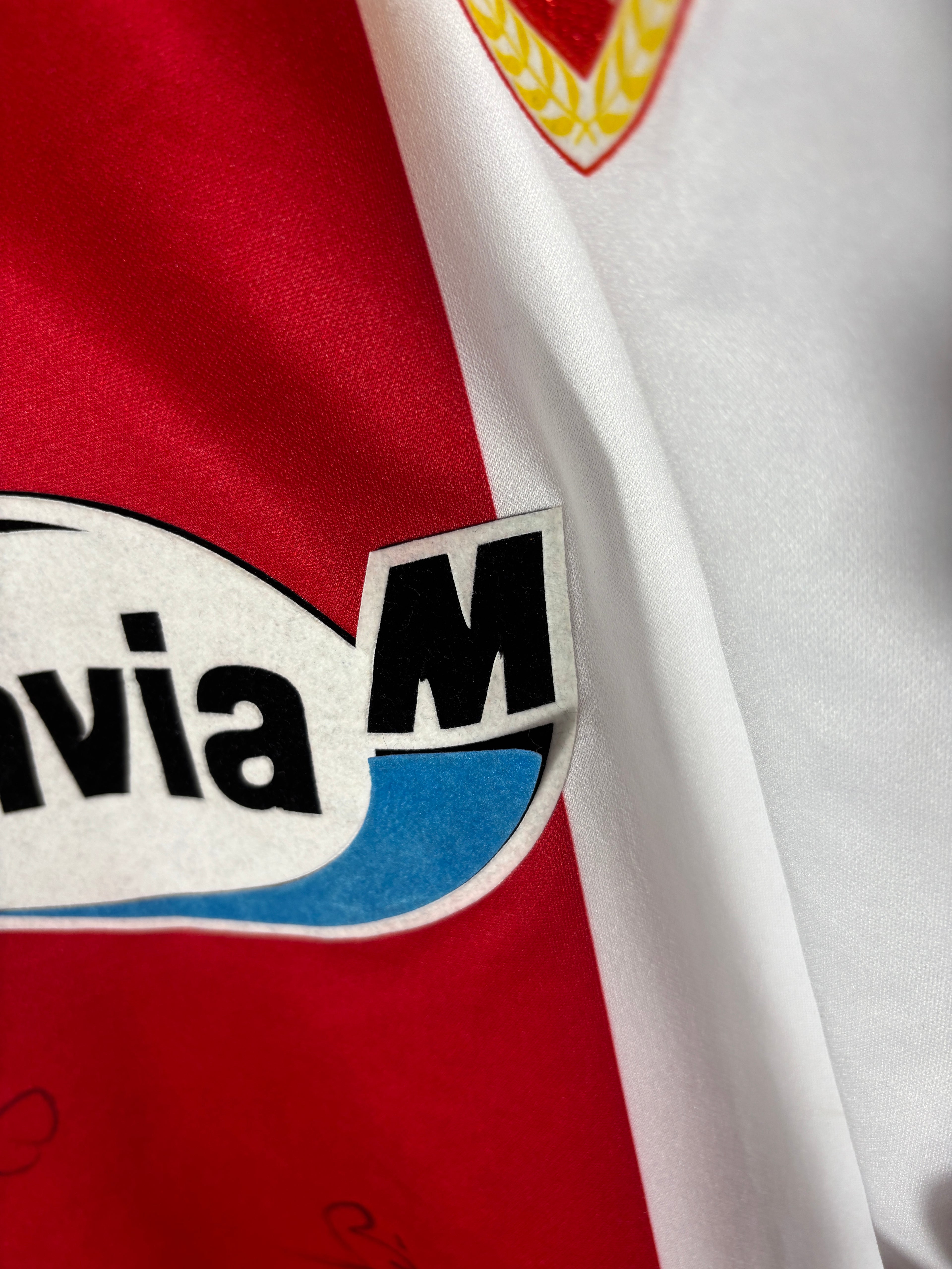 Es handelt sich um ein getragenes Original-Trikot. Leichte Gebrauchsspuren oder kleinere Mängel können altersbedingt vorhanden sein – diese sind nach bestem Wissen in der Artikelbeschreibung aufgeführt und auf den Fotos detailliert festgehalten
