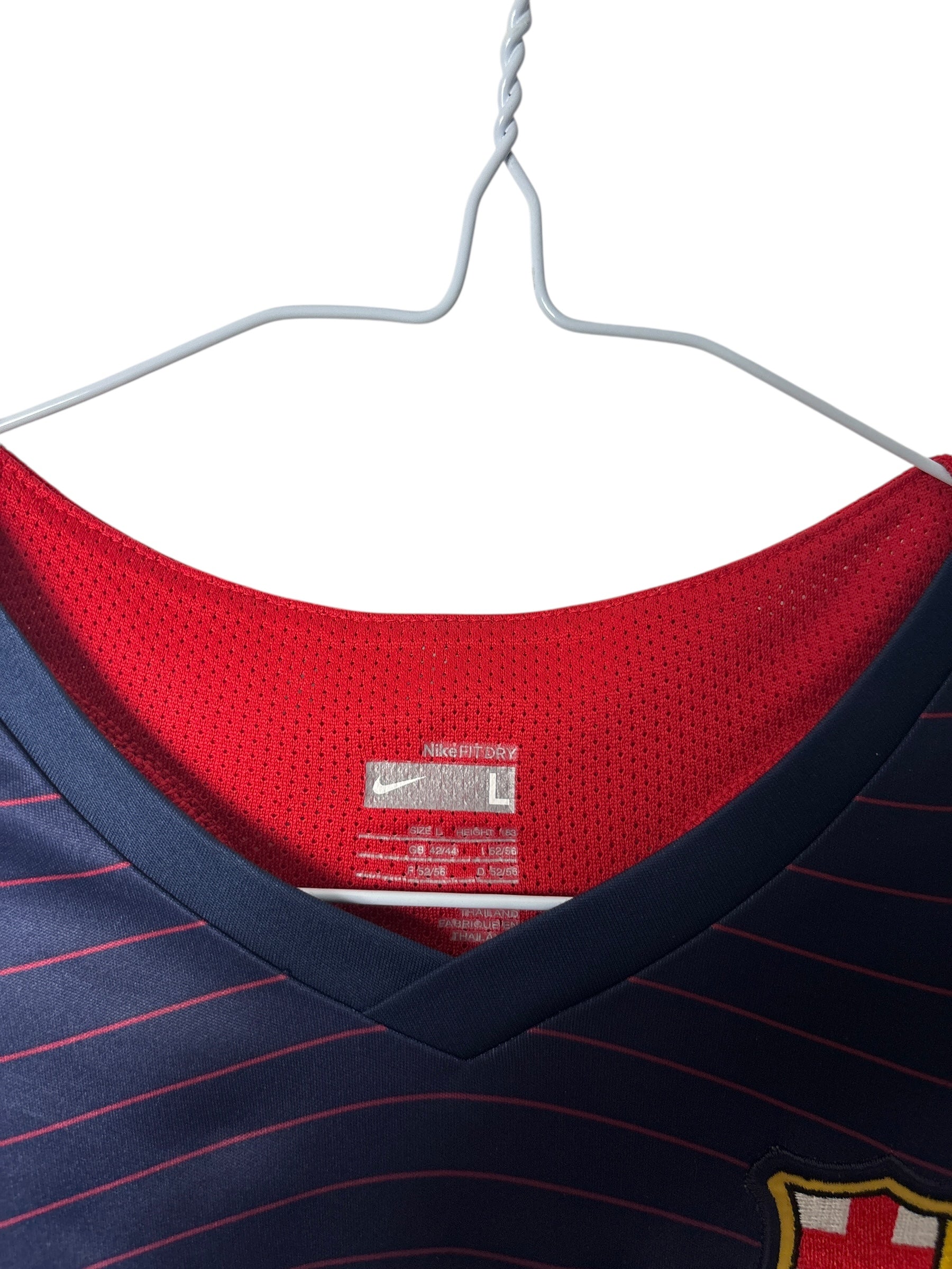 Es handelt sich um ein getragenes Original-Trikot. Leichte Gebrauchsspuren oder kleinere Mängel können altersbedingt vorhanden sein – diese sind nach bestem Wissen in der Artikelbeschreibung aufgeführt und auf den Fotos detailliert festgehalten.