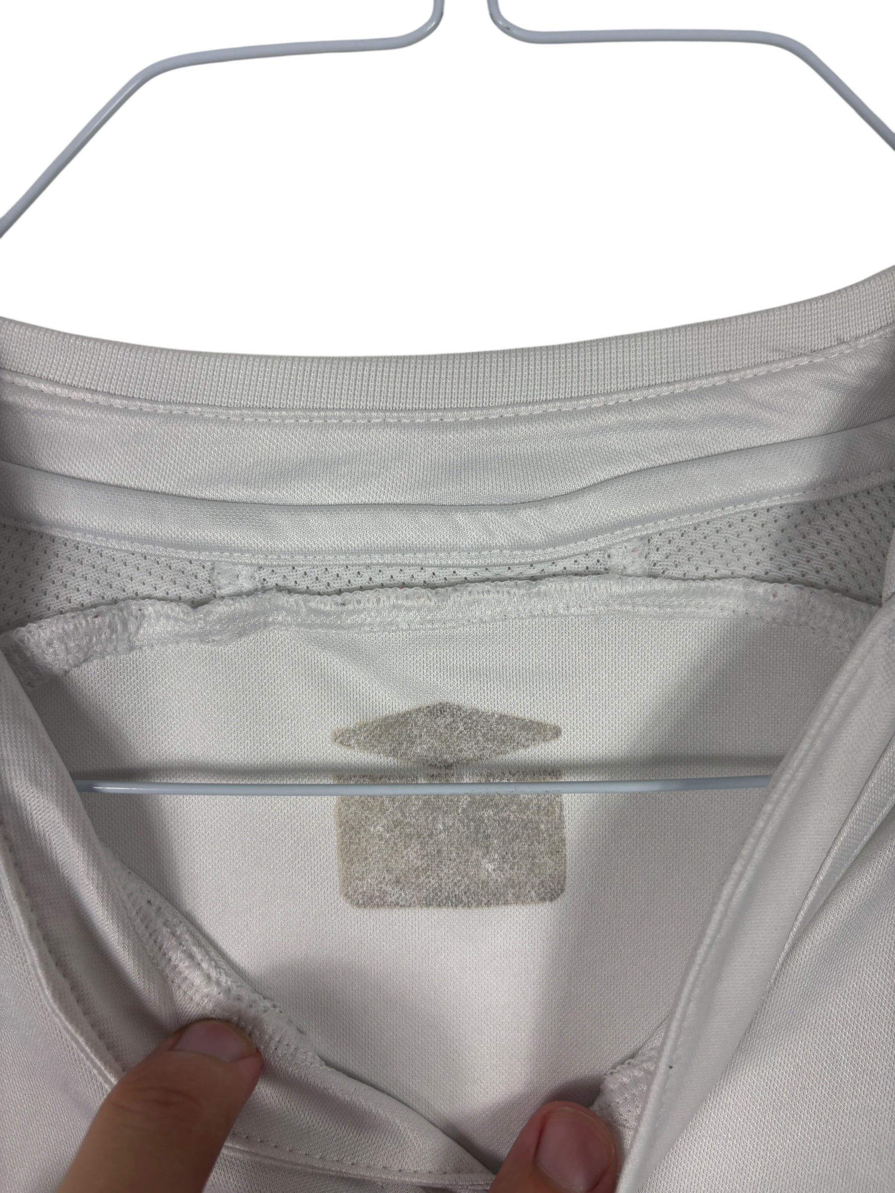 Es handelt sich um ein getragenes Original-Trikot. Leichte Gebrauchsspuren oder kleinere Mängel können altersbedingt vorhanden sein – diese sind nach bestem Wissen in der Artikelbeschreibung aufgeführt und auf den Fotos detailliert festgehalten.