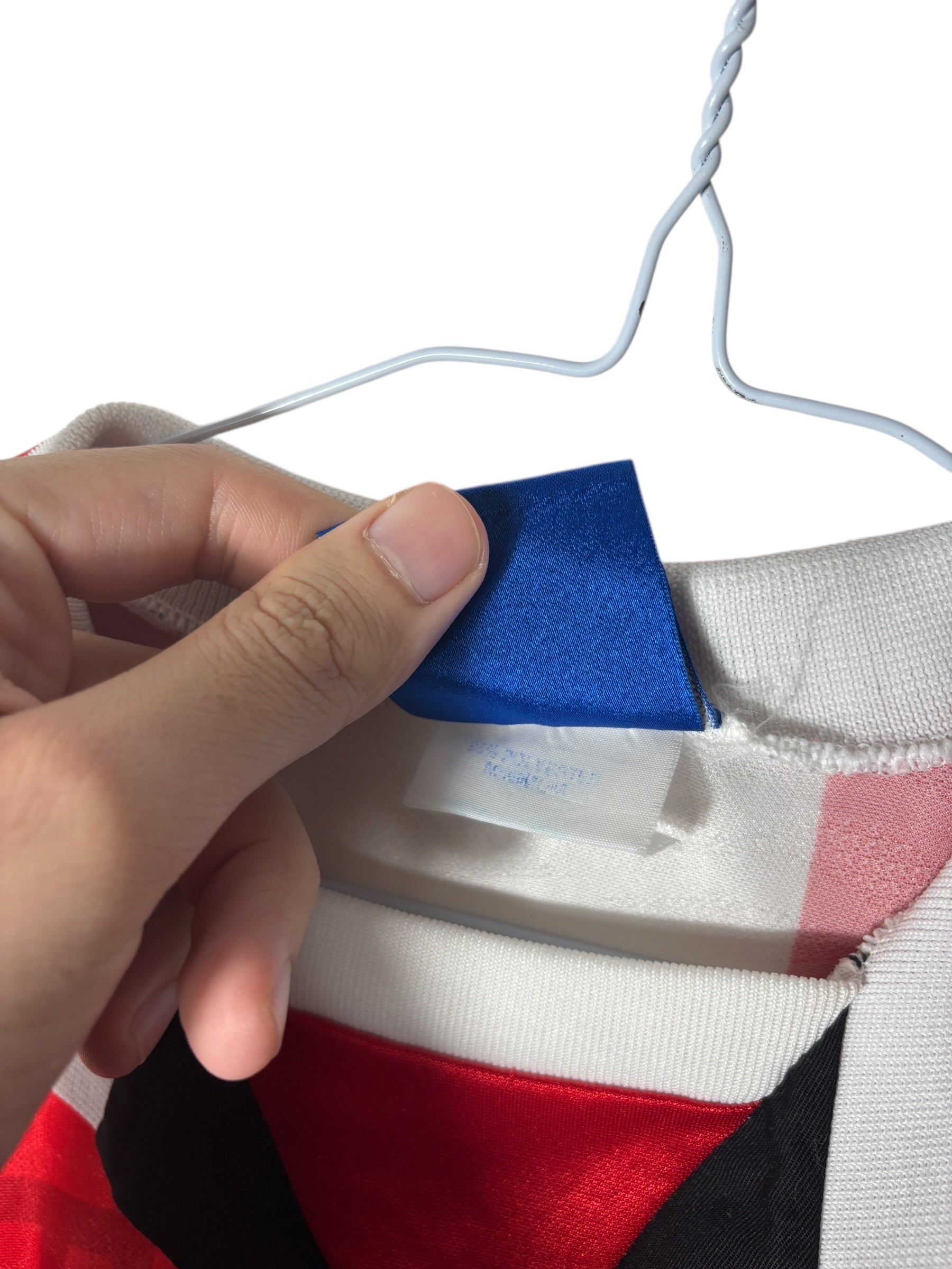 Es handelt sich um ein getragenes Original-Trikot. Leichte Gebrauchsspuren oder kleinere Mängel können altersbedingt vorhanden sein – diese sind nach bestem Wissen in der Artikelbeschreibung aufgeführt und auf den Fotos detailliert festgehalten.