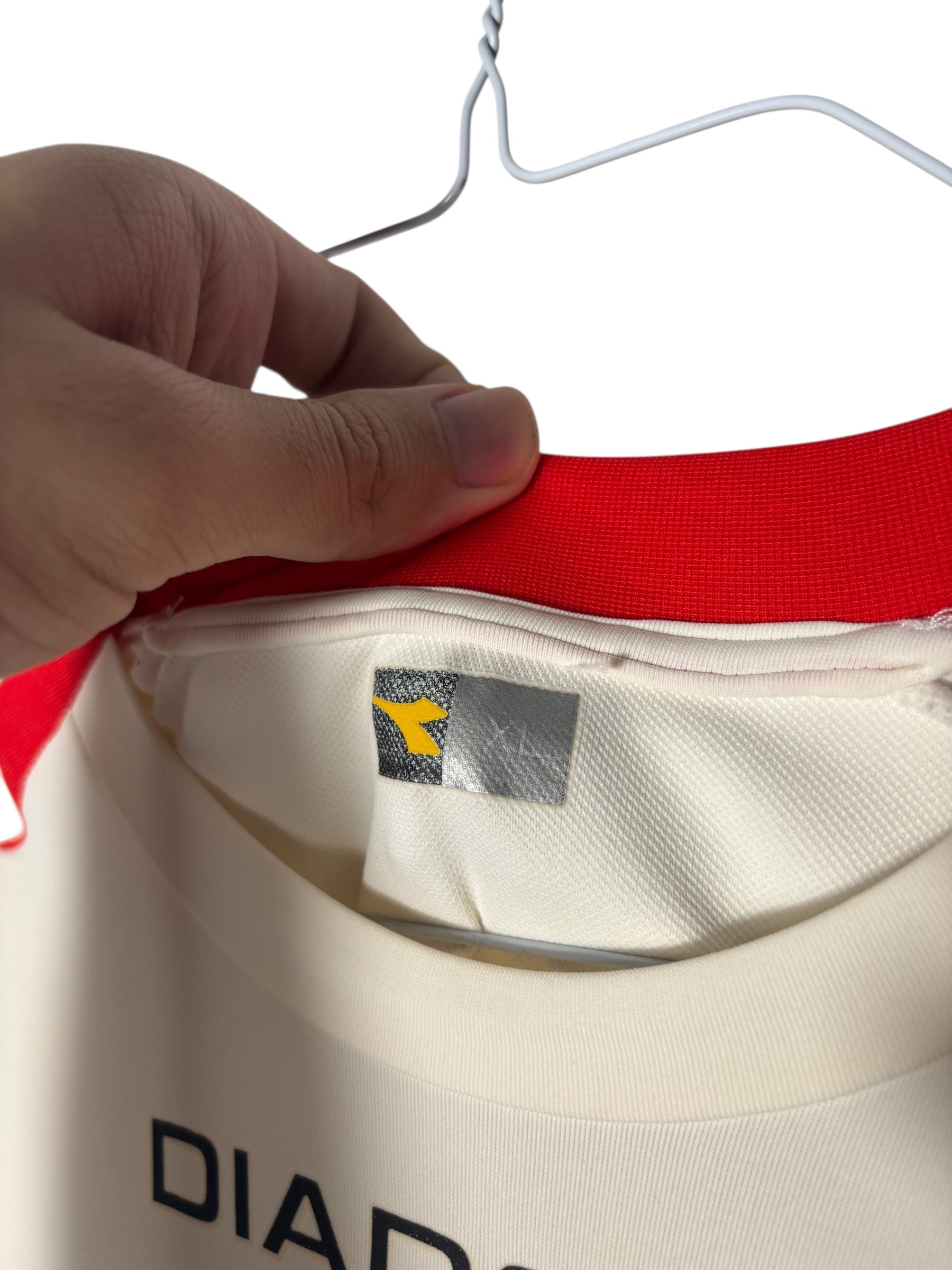 Es handelt sich um ein getragenes Original-Trikot. Leichte Gebrauchsspuren oder kleinere Mängel können altersbedingt vorhanden sein – diese sind nach bestem Wissen in der Artikelbeschreibung aufgeführt und auf den Fotos detailliert festgehalten