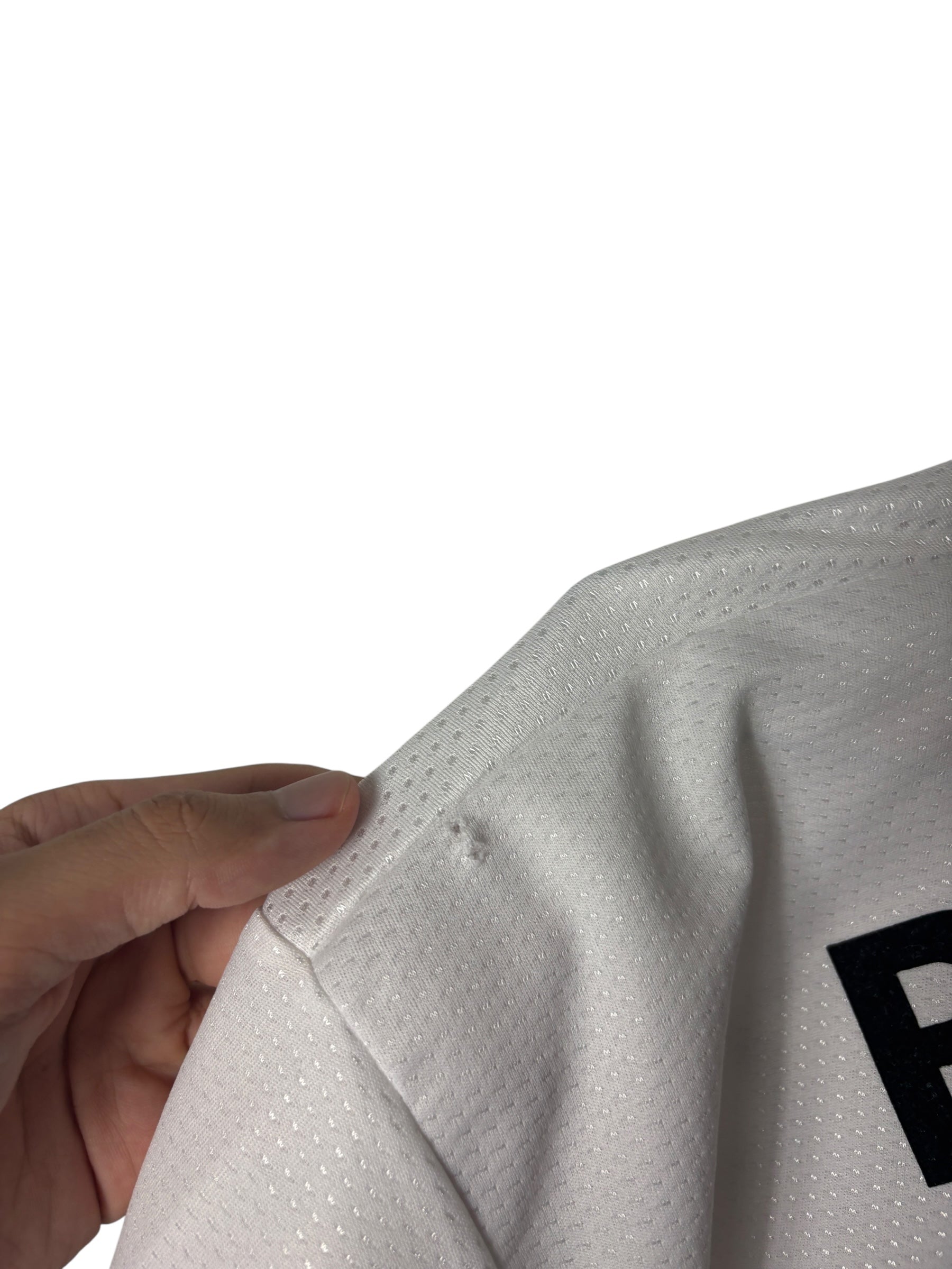 Es handelt sich um ein getragenes Original-Trikot. Leichte Gebrauchsspuren oder kleinere Mängel können altersbedingt vorhanden sein – diese sind nach bestem Wissen in der Artikelbeschreibung aufgeführt und auf den Fotos detailliert festgehalten.