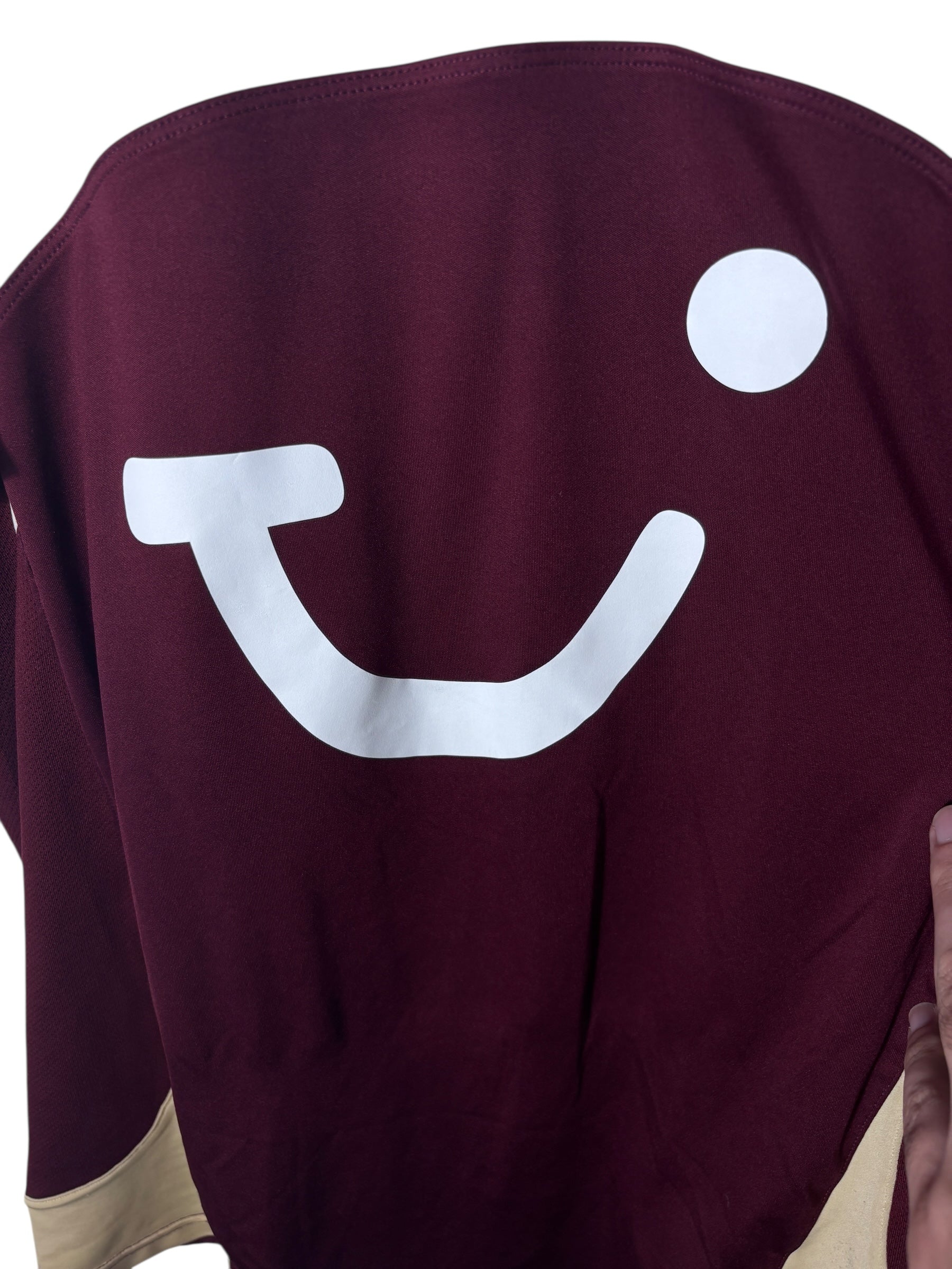 Es handelt sich um ein getragenes Original-Trikot. Leichte Gebrauchsspuren oder kleinere Mängel können altersbedingt vorhanden sein – diese sind nach bestem Wissen in der Artikelbeschreibung aufgeführt und auf den Fotos detailliert festgehalten