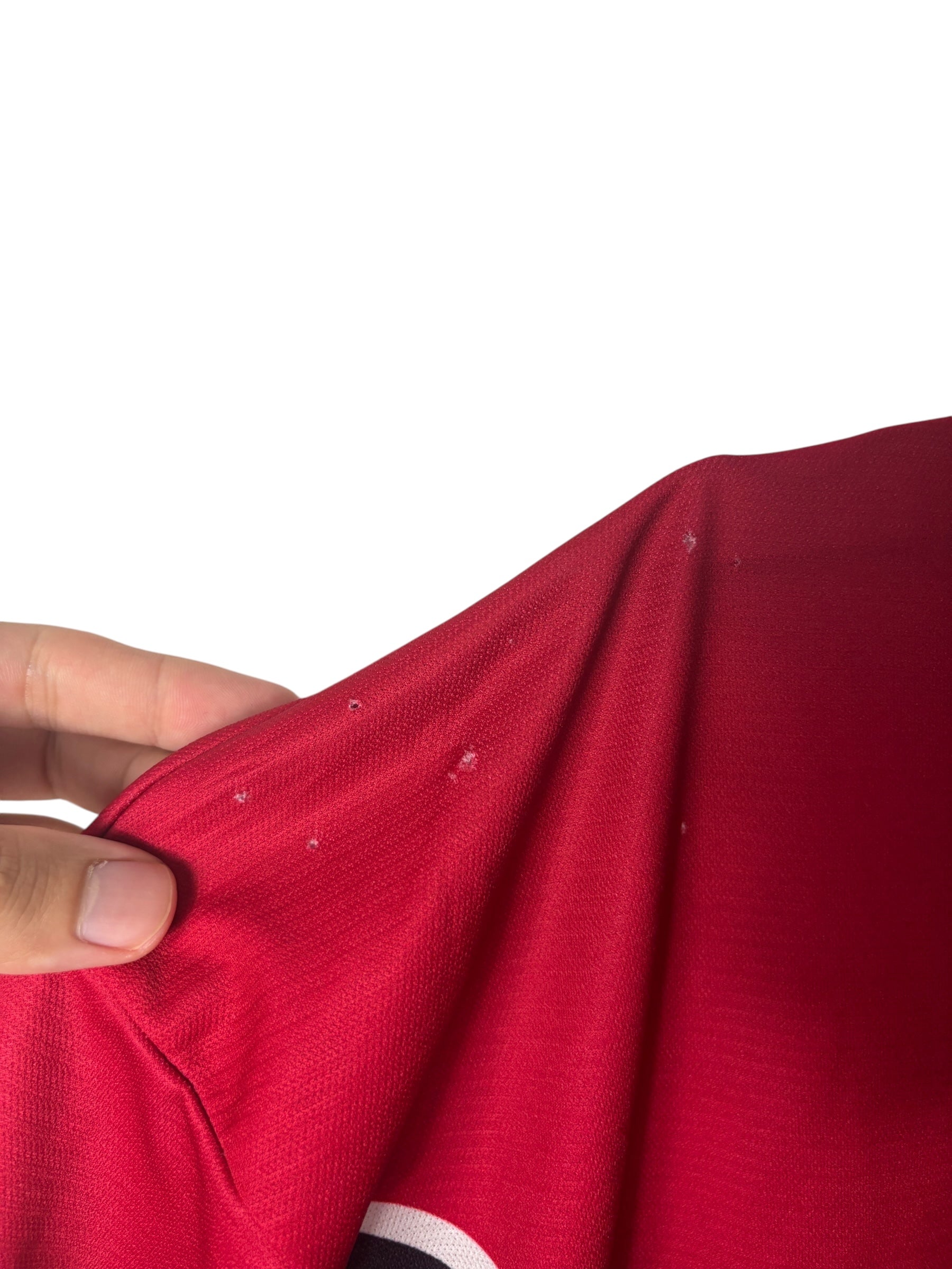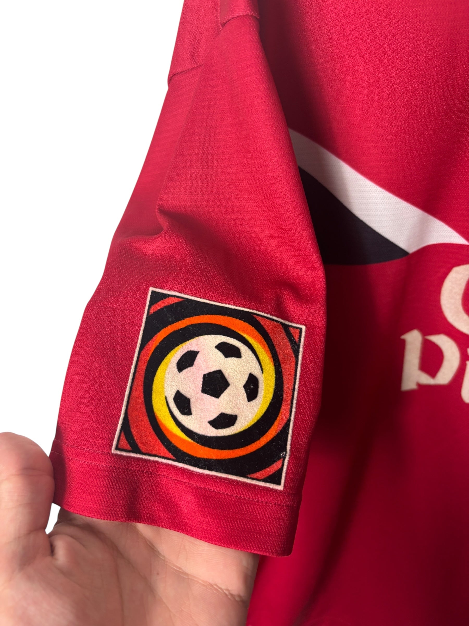 Es handelt sich um ein getragenes Original-Trikot. Leichte Gebrauchsspuren oder kleinere Mängel können altersbedingt vorhanden sein – diese sind nach bestem Wissen in der Artikelbeschreibung aufgeführt und auf den Fotos detailliert festgehalten.