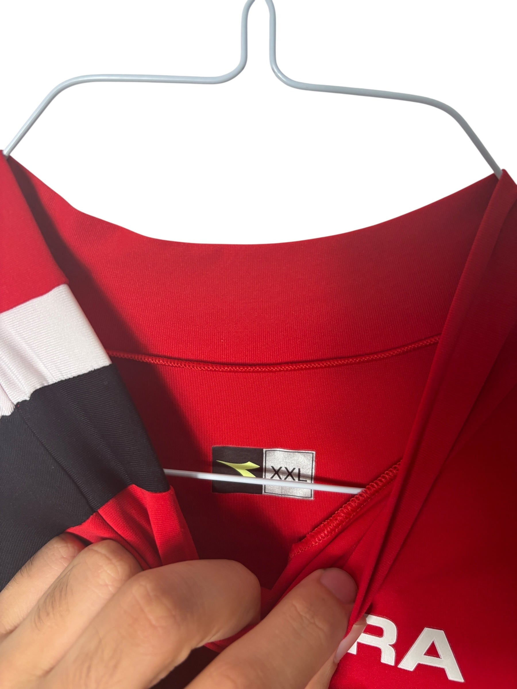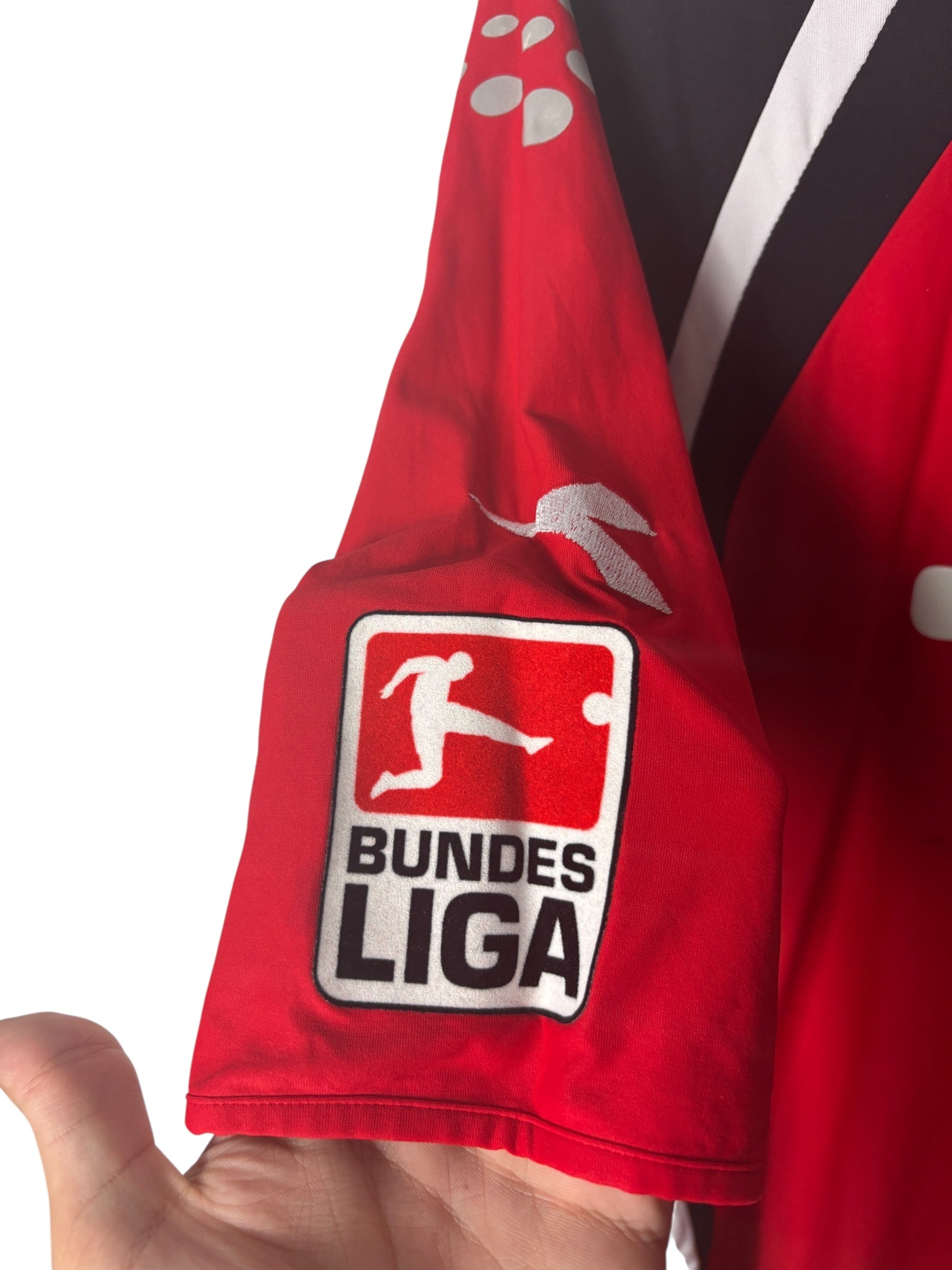 Es handelt sich um ein getragenes Original-Trikot. Leichte Gebrauchsspuren oder kleinere Mängel können altersbedingt vorhanden sein – diese sind nach bestem Wissen in der Artikelbeschreibung aufgeführt und auf den Fotos detailliert festgehalten.