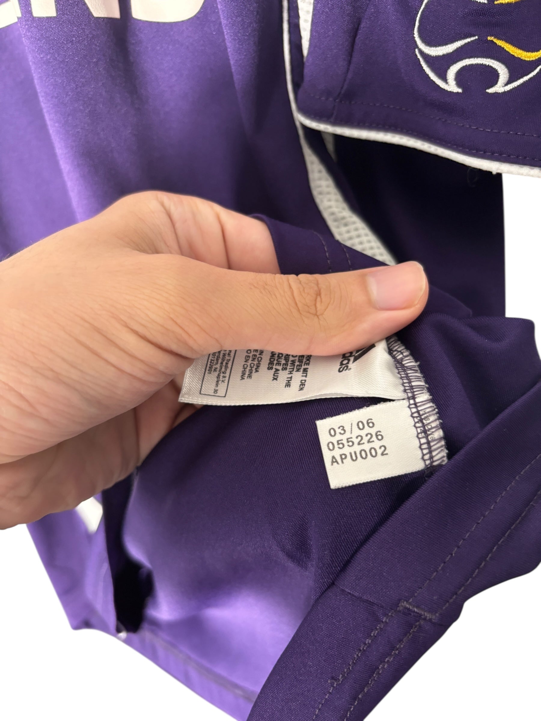 Es handelt sich um ein getragenes Original-Trikot. Leichte Gebrauchsspuren oder kleinere Mängel können altersbedingt vorhanden sein – diese sind nach bestem Wissen in der Artikelbeschreibung aufgeführt und auf den Fotos detailliert festgehalten