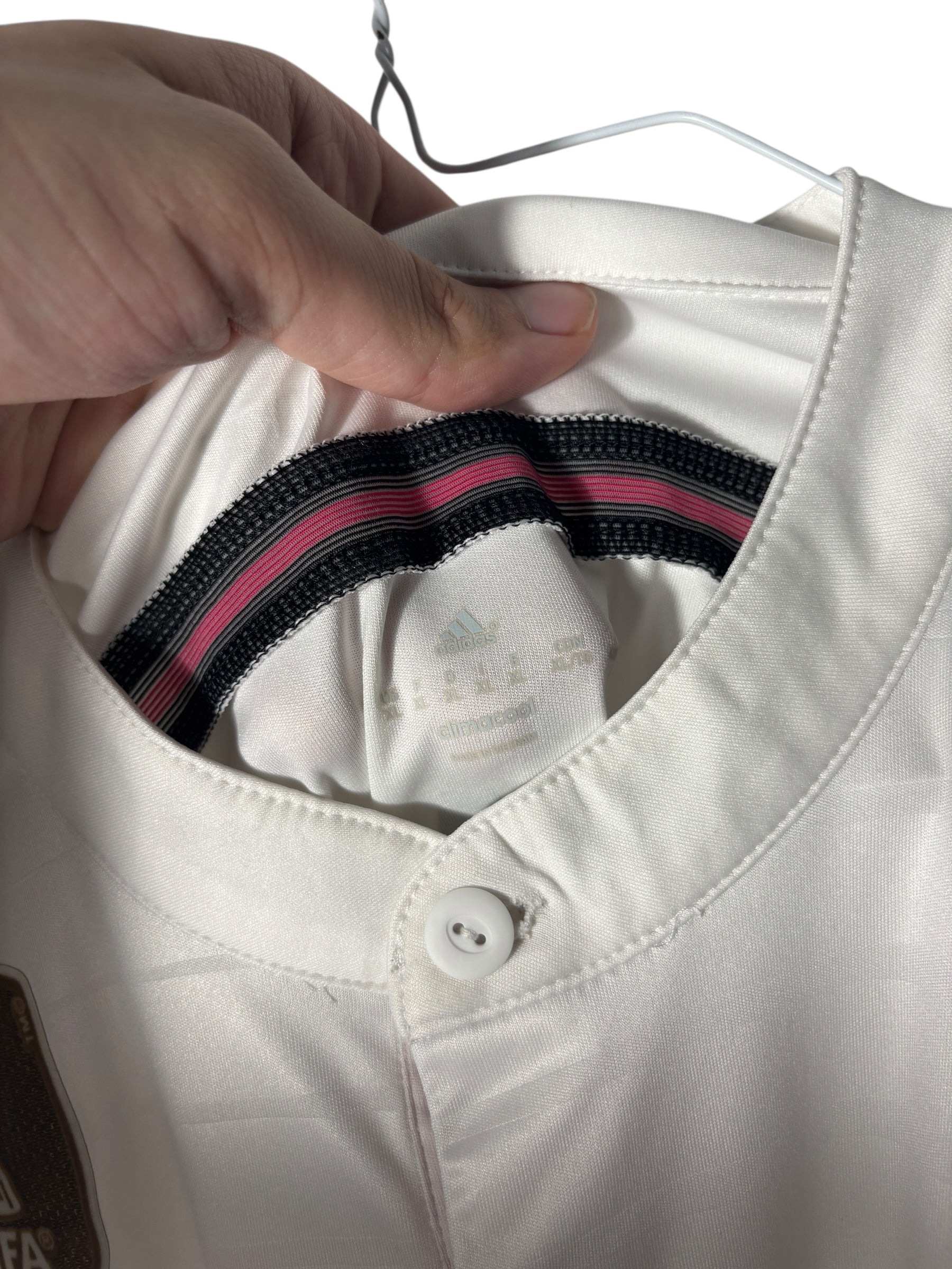 Es handelt sich um ein getragenes Original-Trikot. Leichte Gebrauchsspuren oder kleinere Mängel können altersbedingt vorhanden sein – diese sind nach bestem Wissen in der Artikelbeschreibung aufgeführt und auf den Fotos detailliert festgehalten