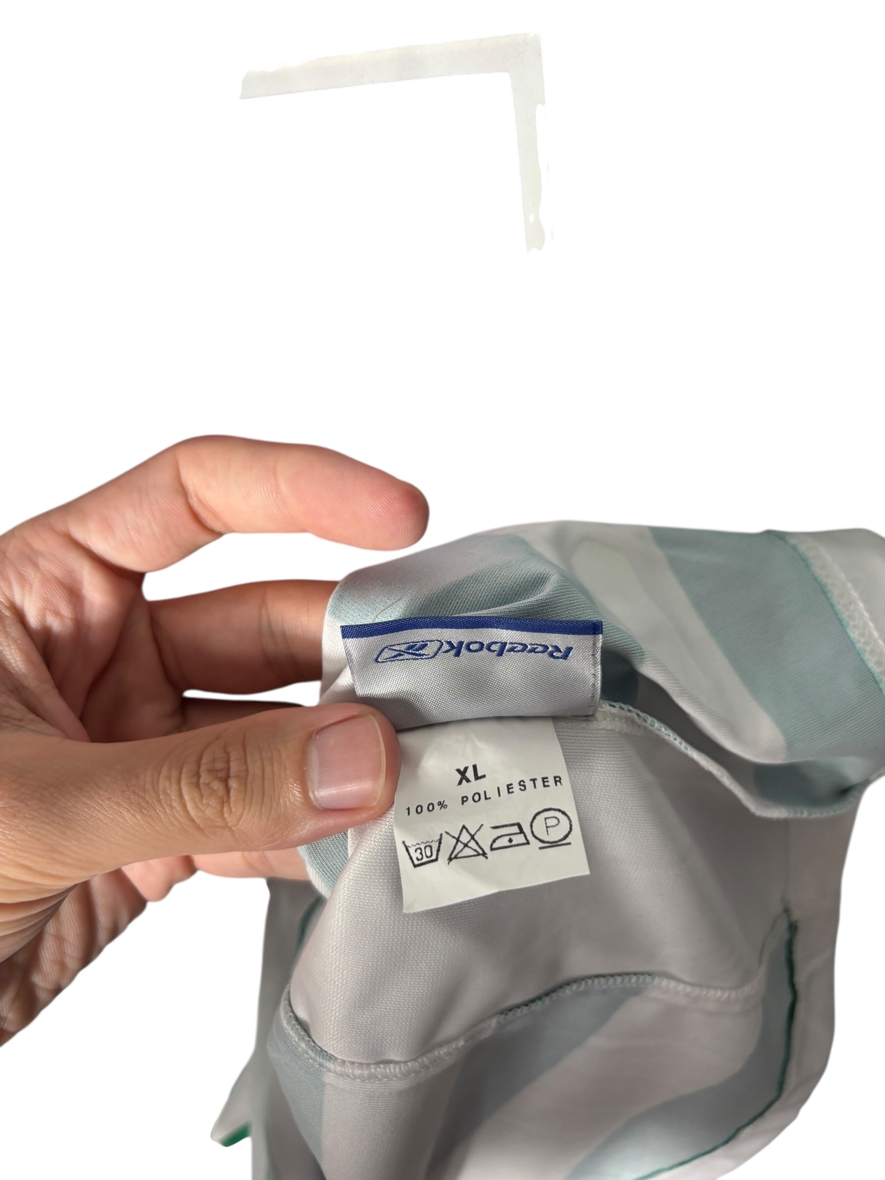 Es handelt sich um ein getragenes Original-Trikot. Leichte Gebrauchsspuren oder kleinere Mängel können altersbedingt vorhanden sein – diese sind nach bestem Wissen in der Artikelbeschreibung aufgeführt und auf den Fotos detailliert festgehalten