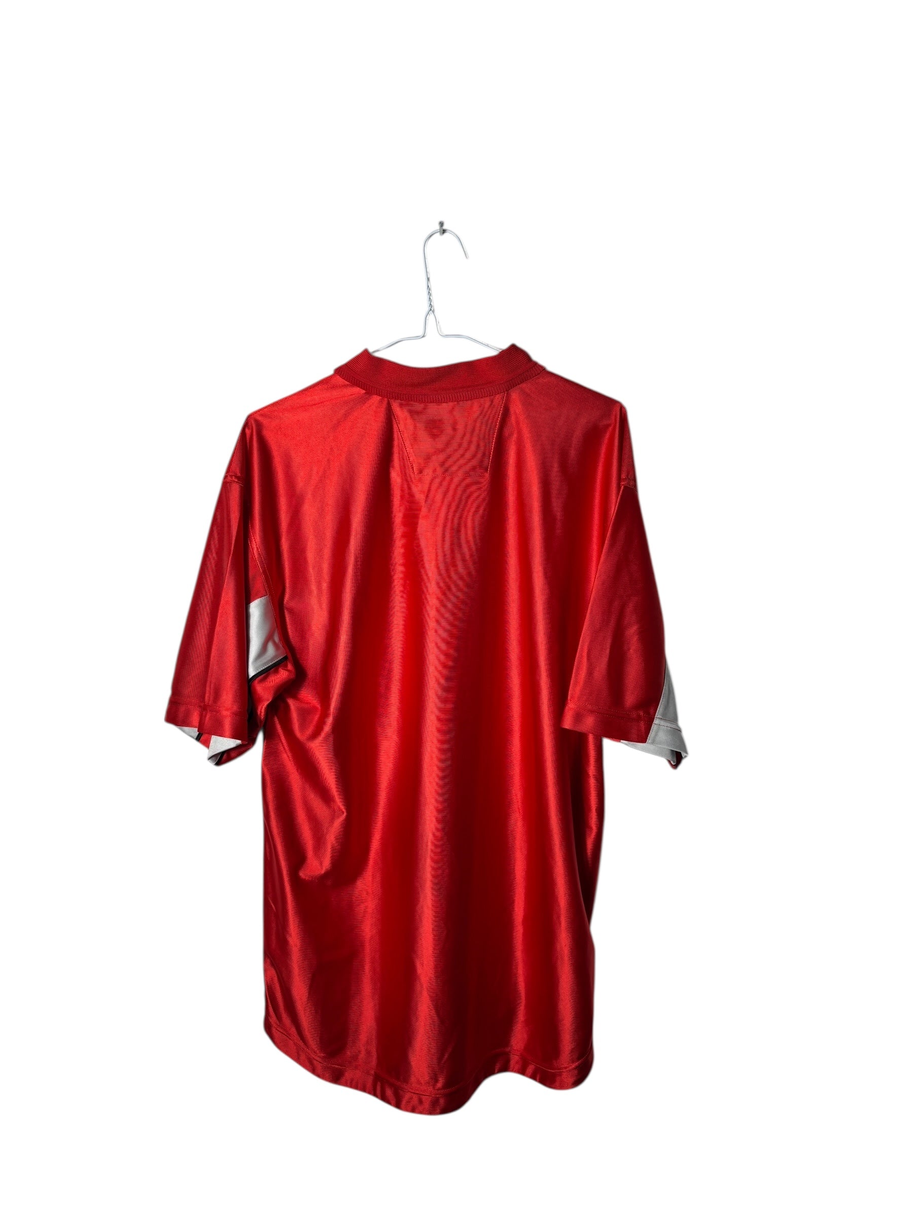 Es handelt sich um ein getragenes Original-Trikot. Leichte Gebrauchsspuren oder kleinere Mängel können altersbedingt vorhanden sein – diese sind nach bestem Wissen in der Artikelbeschreibung aufgeführt und auf den Fotos detailliert festgehalten.