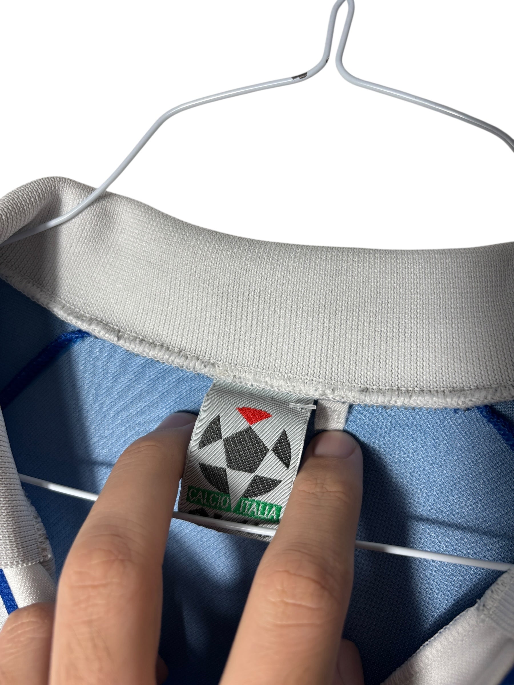 Es handelt sich um ein getragenes Original-Trikot. Leichte Gebrauchsspuren oder kleinere Mängel können altersbedingt vorhanden sein – diese sind nach bestem Wissen in der Artikelbeschreibung aufgeführt und auf den Fotos detailliert festgehalten.
