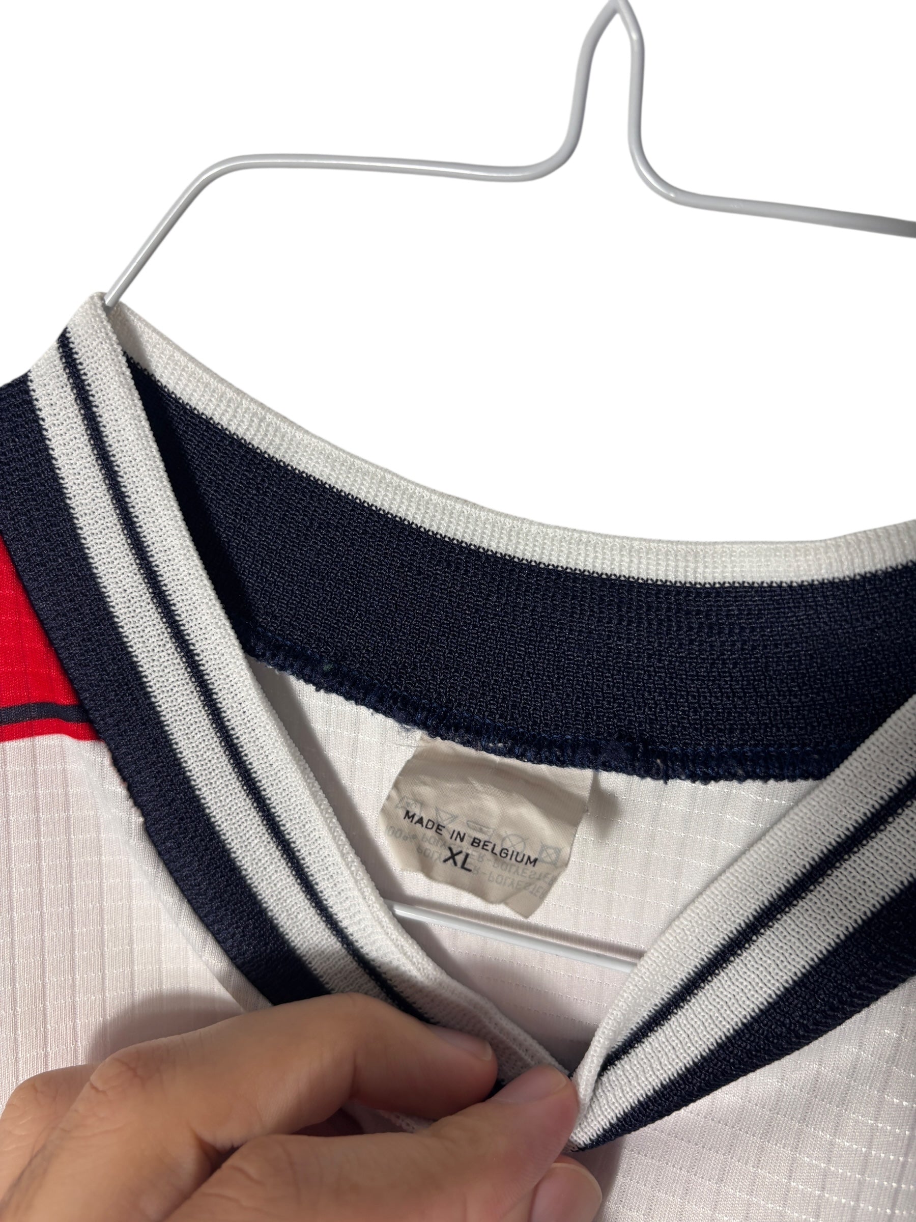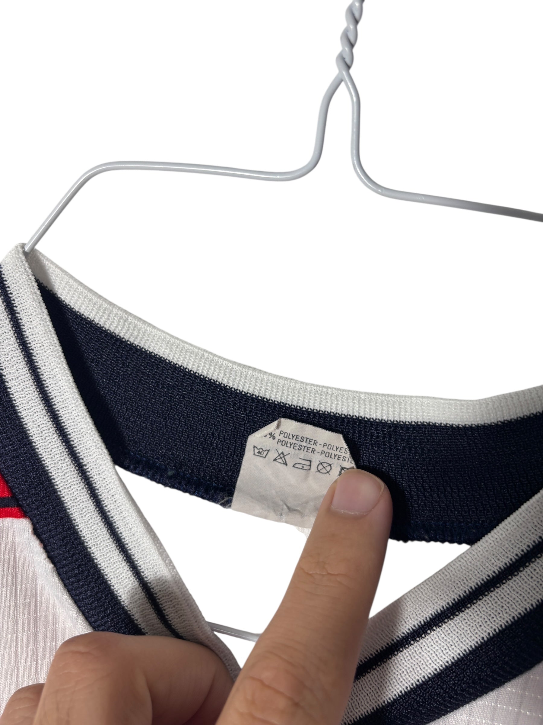 Es handelt sich um ein getragenes Original-Trikot. Leichte Gebrauchsspuren oder kleinere Mängel können altersbedingt vorhanden sein – diese sind nach bestem Wissen in der Artikelbeschreibung aufgeführt und auf den Fotos detailliert festgehalten