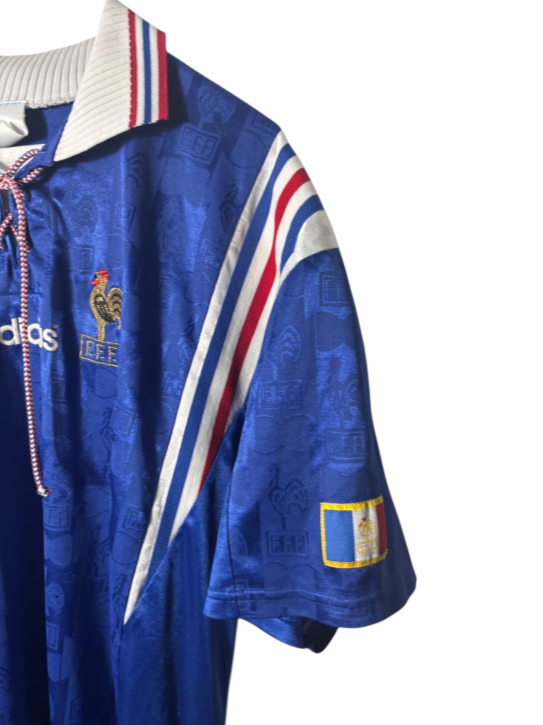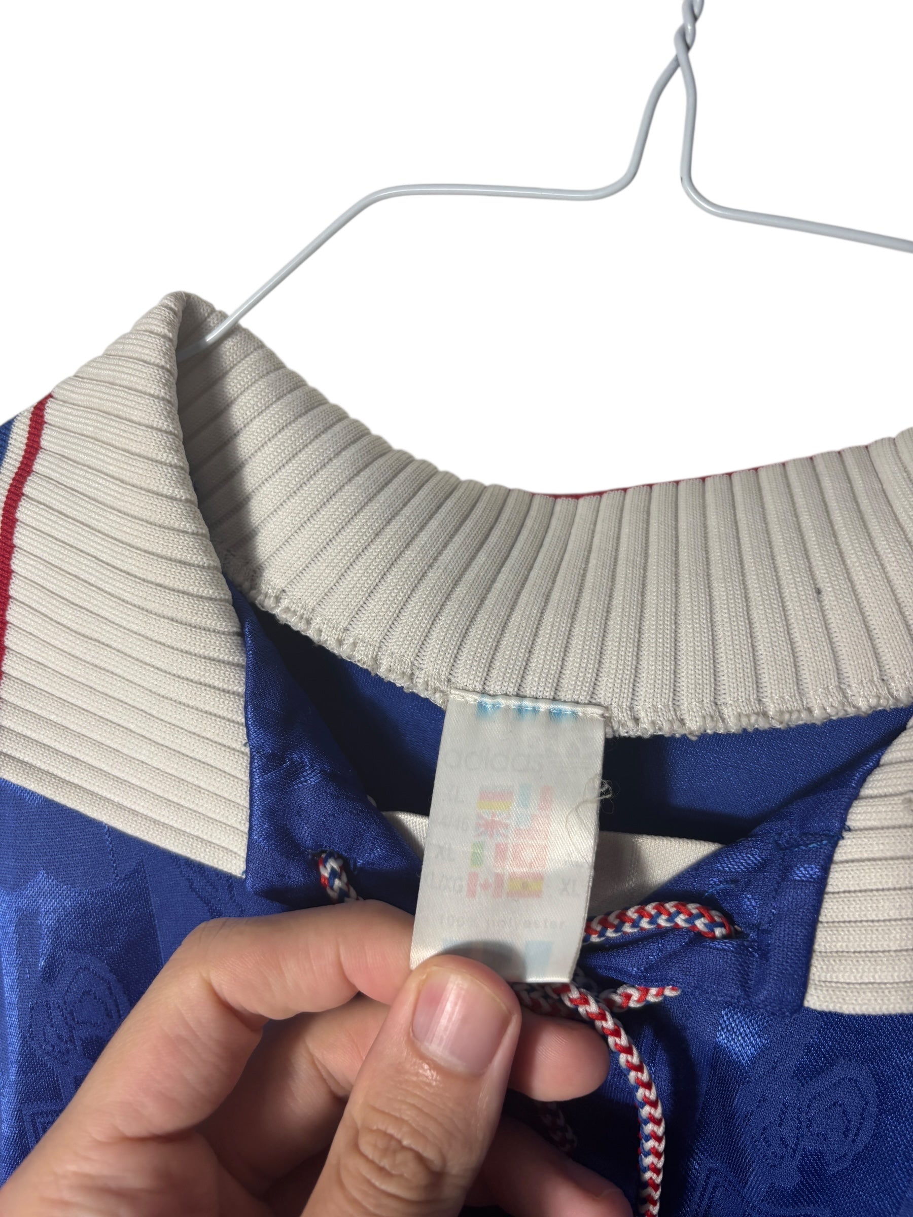 Es handelt sich um ein getragenes Original-Trikot. Leichte Gebrauchsspuren oder kleinere Mängel können altersbedingt vorhanden sein – diese sind nach bestem Wissen in der Artikelbeschreibung aufgeführt und auf den Fotos detailliert festgehalten.