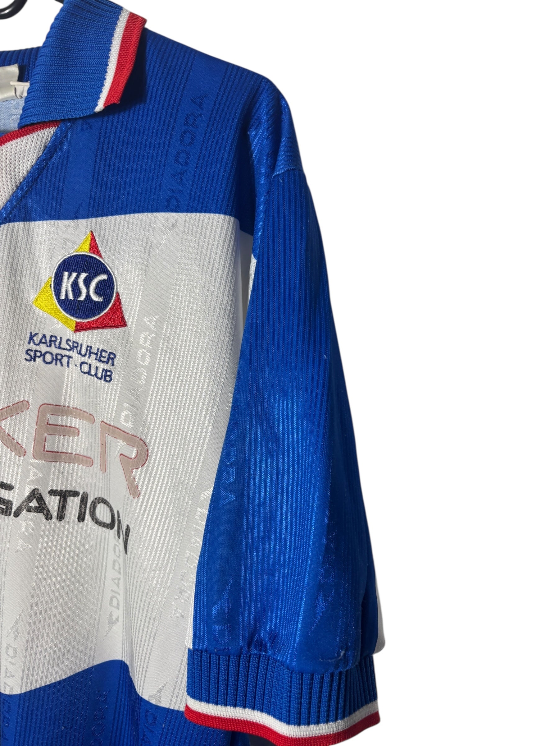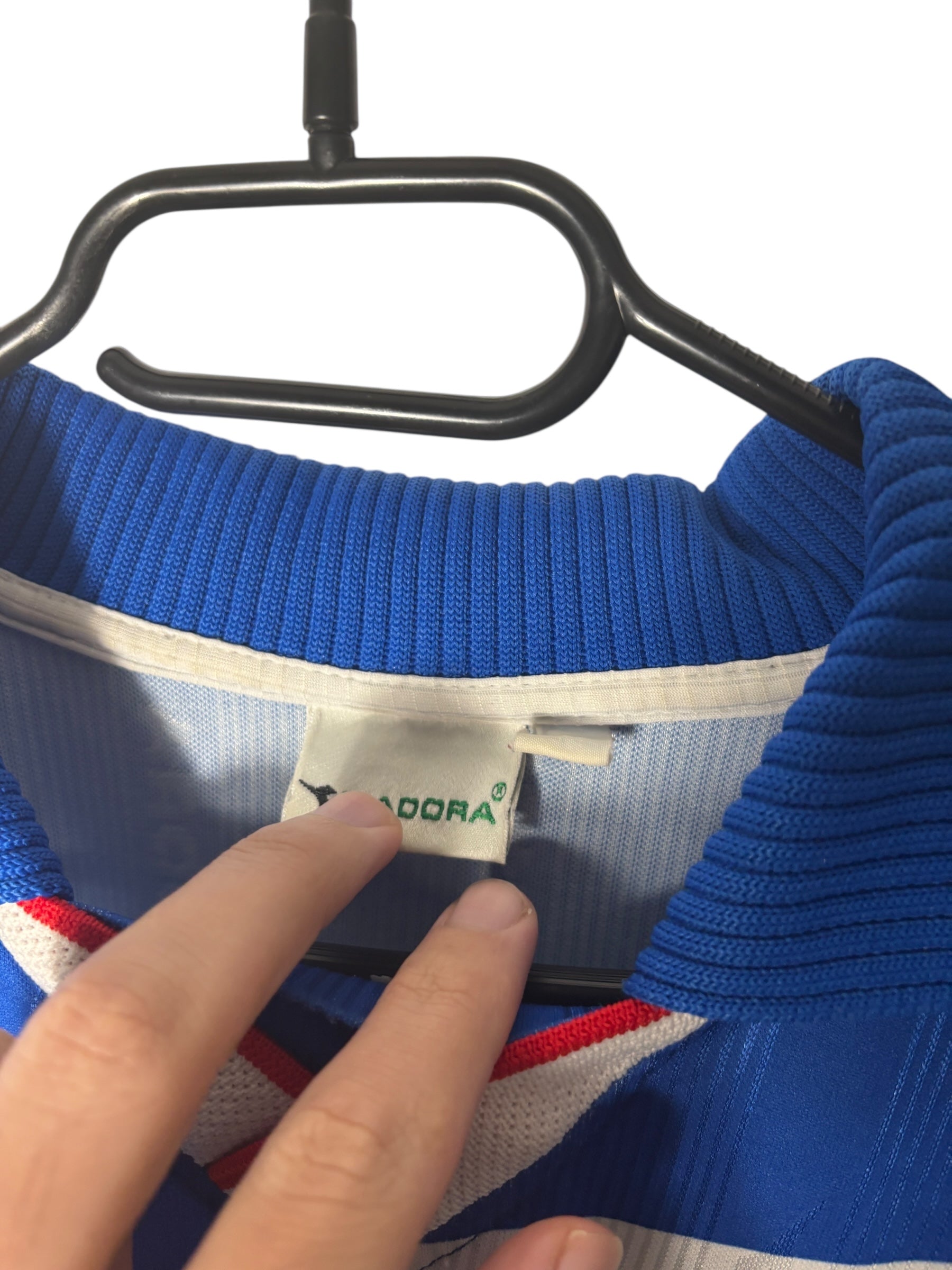 Es handelt sich um ein getragenes Original-Trikot. Leichte Gebrauchsspuren oder kleinere Mängel können altersbedingt vorhanden sein – diese sind nach bestem Wissen in der Artikelbeschreibung aufgeführt und auf den Fotos detailliert festgehalten.