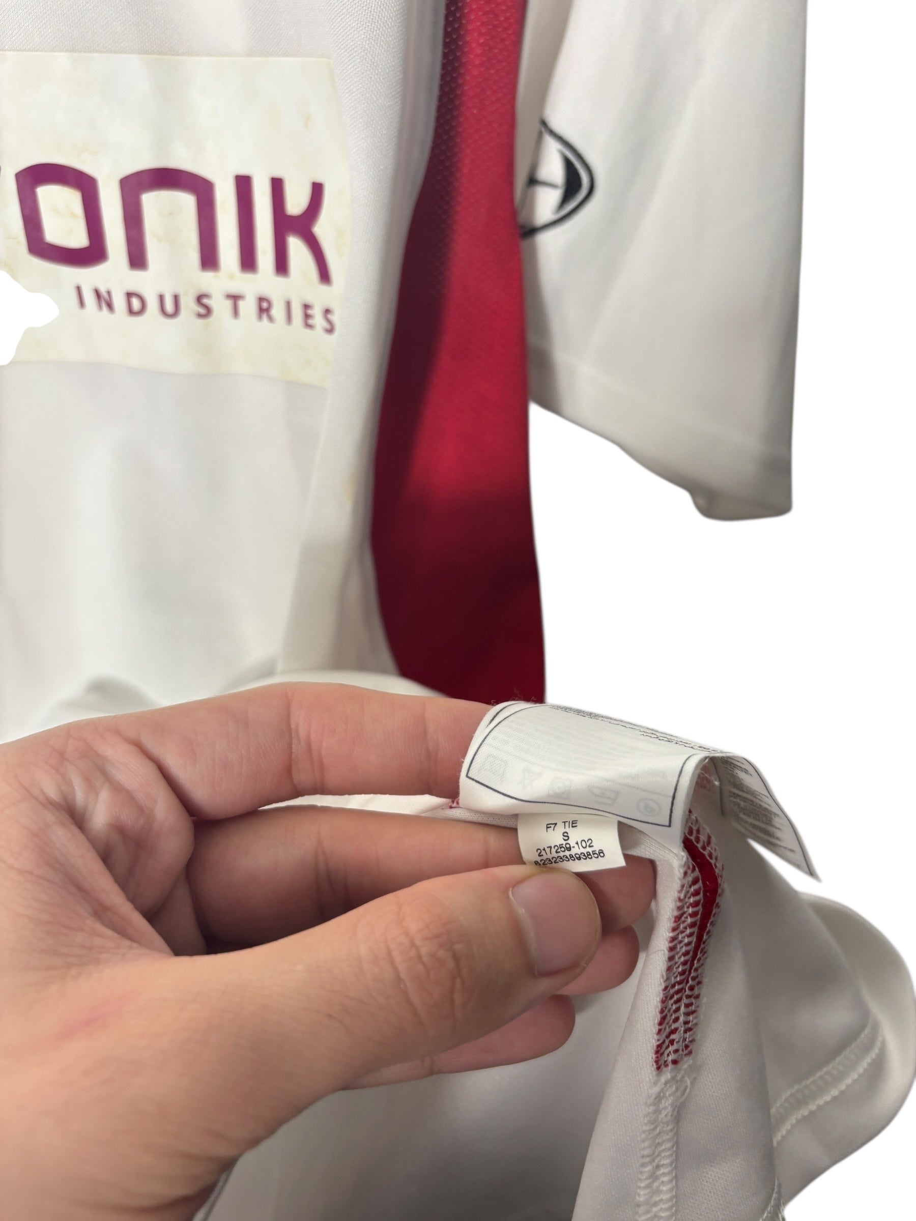 Es handelt sich um ein getragenes Original-Trikot. Leichte Gebrauchsspuren oder kleinere Mängel können altersbedingt vorhanden sein – diese sind nach bestem Wissen in der Artikelbeschreibung aufgeführt und auf den Fotos detailliert festgehalten.